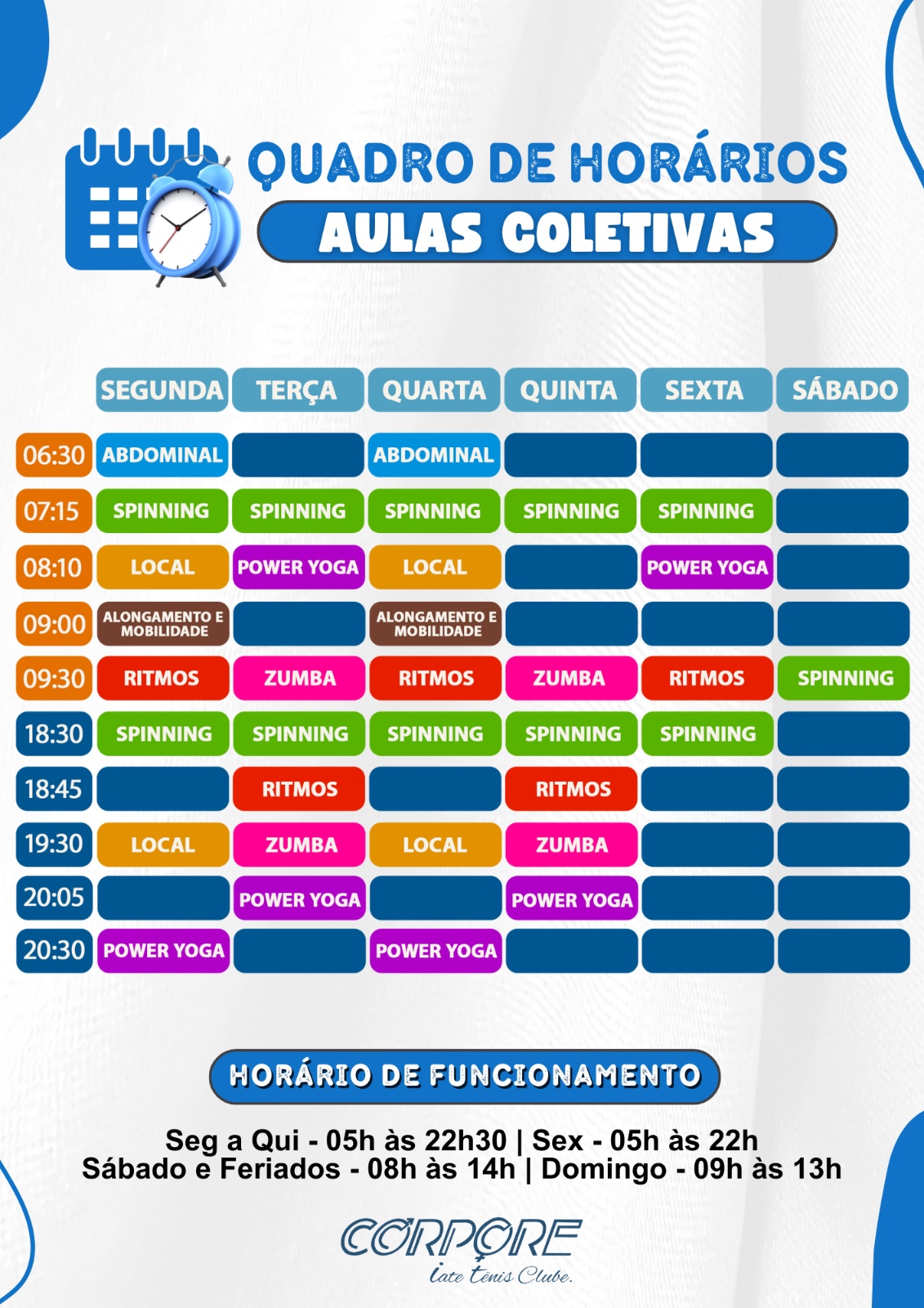 ⏰ Horários de funcionamento Academia Corpore 2026.